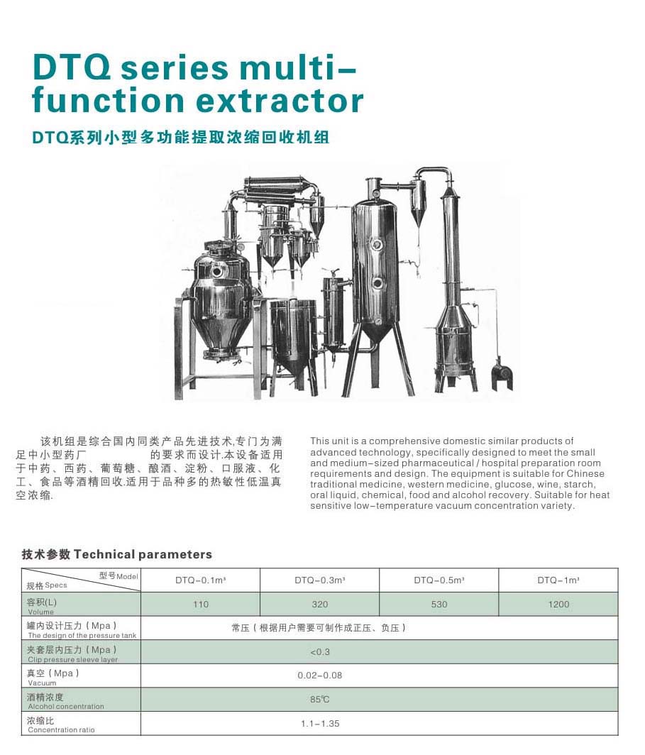 DTQ系列小型多功能提取濃縮回收機組